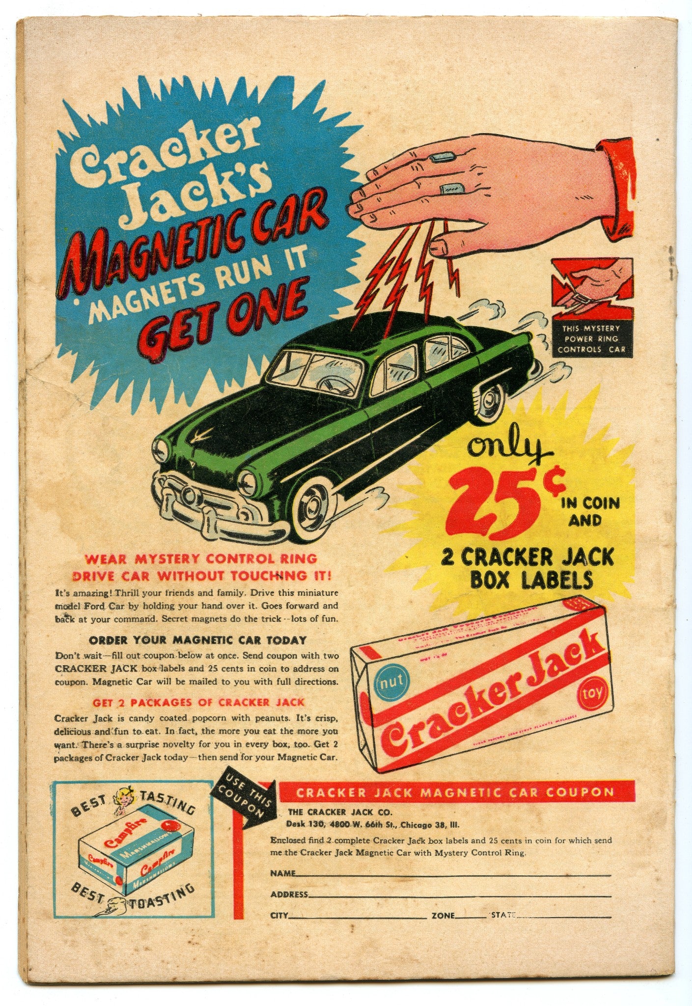 Small tear seal and color touch on top right corner of front cover
